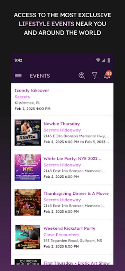 Quiver connects you to curated events across the globe that celebrate ethical non-monogamy. Whether you’re looking for a social gathering or themed events, Quiver lets you search, RSVP, and see who’s attending—all within the app.