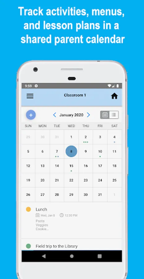 - Easily send newsletters and surveys to all parents, and highlight upcoming events on a shared calendar