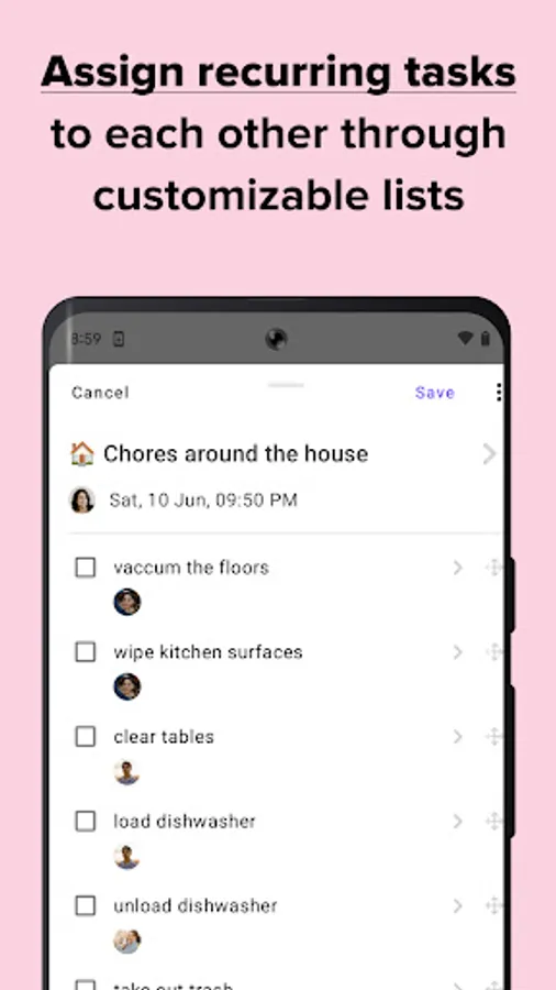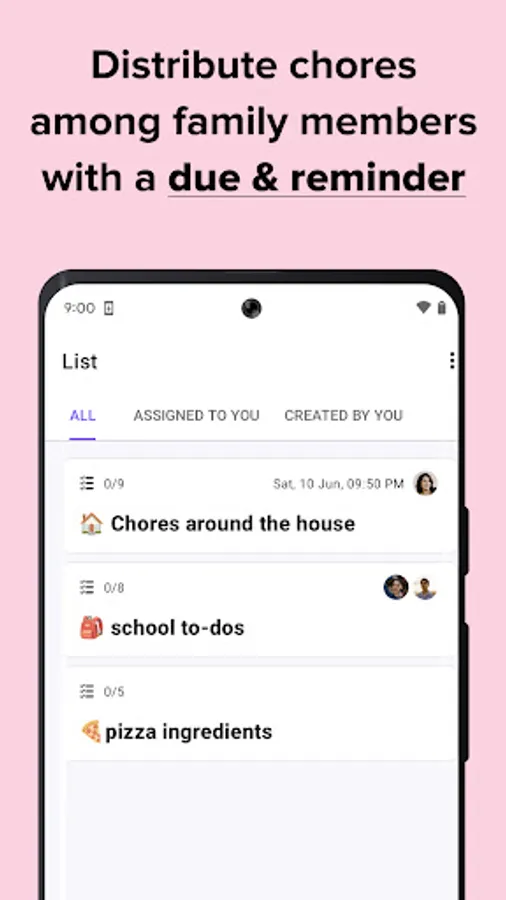 One family, shared responsibility. You can distribute housework among family members through shared to-do lists. For each chore list or even each to-do item, you can add a due and track progress. The flexible list feature also allows you to create personal to-dos that can be viewed by you only.