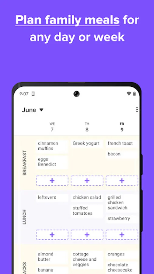 We know getting meals planned is important! You can plan all meals for the week or just a few days of the week. The intuitive user interfaces make it easy to include any details, e.g., cook time, meal time, chef, ingredients, instructions. You can also generate a shopping list from recipes and meals.