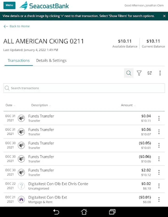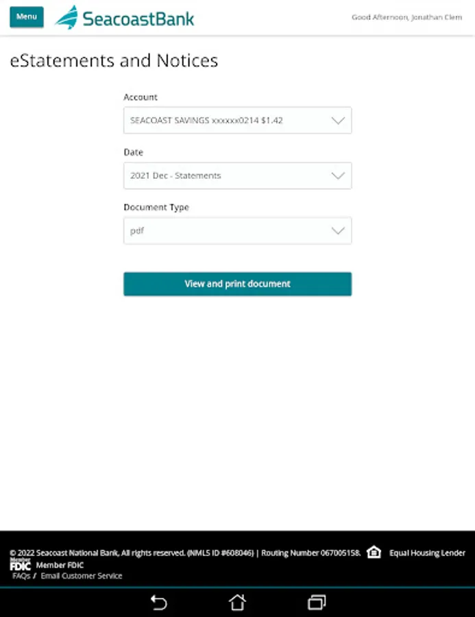 Use of Seacoast Mobile Banking requires enrollment in Online Banking. See Seacoast Bank Online Banking Agreement https://www.seacoastbank.com/hubfs/Disclosures/Online-Banking-Disclosure/OnlineBankingAgreement_FINAL.pdf. The Seacoast Mobile Banking app is free, but message and data rates from your carrier may apply. System availability and response time are subject to market conditions. Seacoast Bank is an Equal Housing Lender. Member FDIC. © 2021 Seacoast National Bank.
