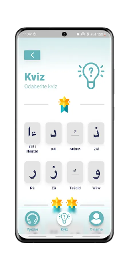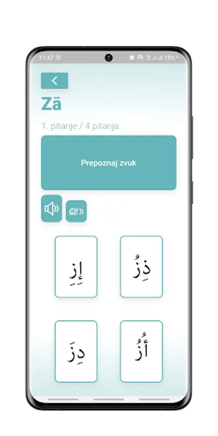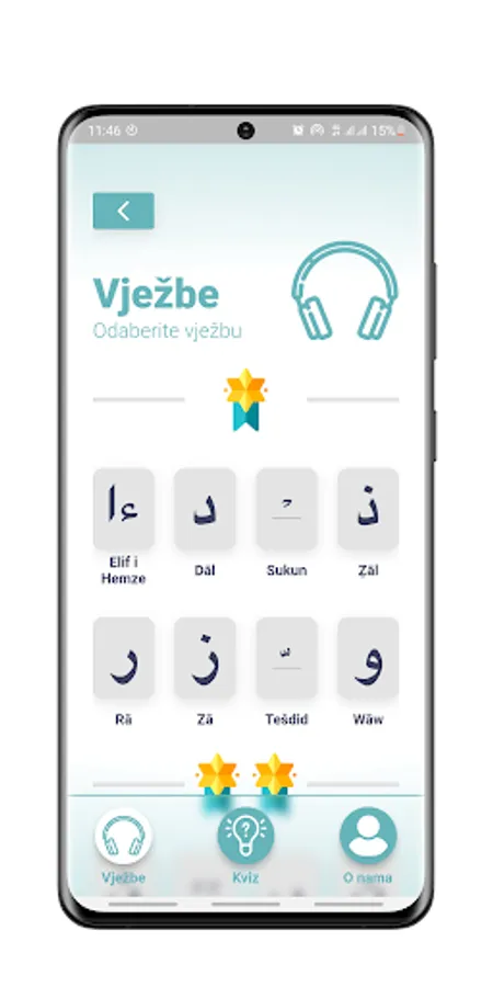 Ova app nudi audio-vizuelni prikaz vježbi i provjere znanja (Kviz).