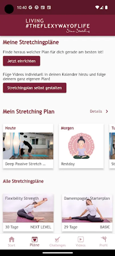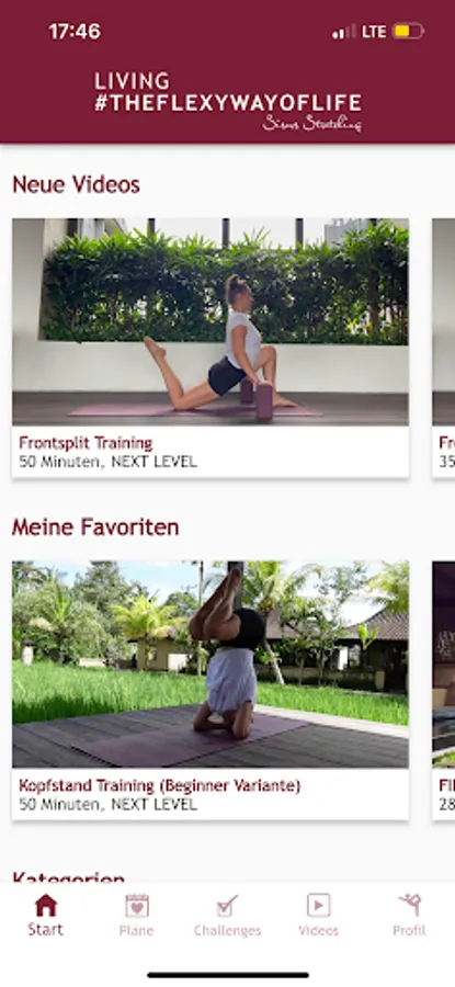 Starting with intensive flexibility training, live classes & challenges to relaxed morning stretch or a mobility unit. You get new videos all the time, starting from 6 minutes up to 3 hours. A varied program is waiting for you!