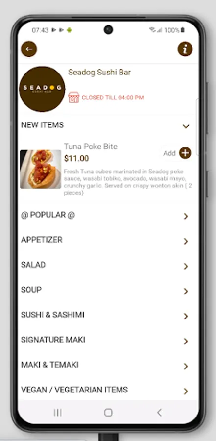 1. Get the Seadog Sushi Bar Online Order app and conveniently order from anywhere on your Android phone and tablet.
