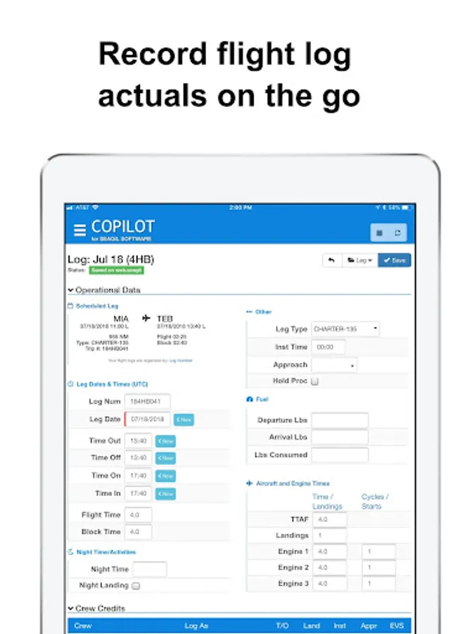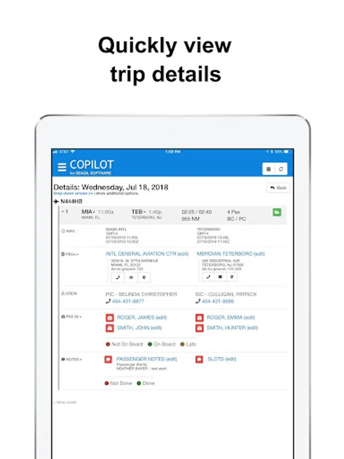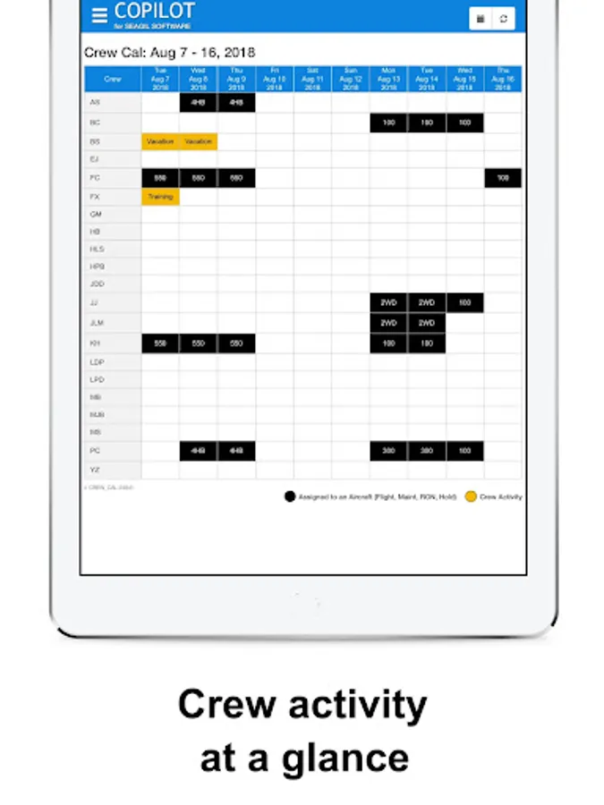 BART CoPilot is the perfect companion to your BART Flight Management System. Flights are viewable in a wide selection of calendar formats. All flight details are available to see, however custom configuration allows management to hide specific data deemed as private. Pilots are able to post flight log actuals as they happen, at any time, no matter where they are without the worry of an internet connection. Syncing handles this for them behind the scenes. Taking pictures of receipts and attaching them to a flight log enhances the paperless experience. Maintenance personnel are able to view aircraft times, see inspection due dates and manage squawks. Your team is simply one download away from enjoying all the benefits CoPilot has to offer.