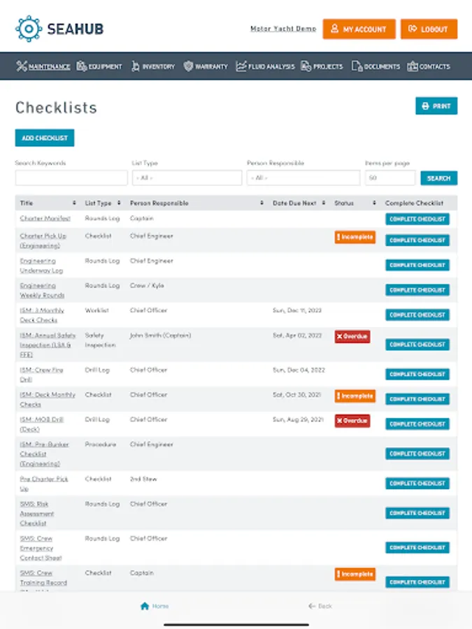 - Checklists including Engine Room Rounds, Safety & Fire Checklists