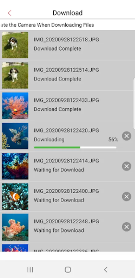 • Downloaded files are automatically saved to smartphone or tablet Photo Gallery app