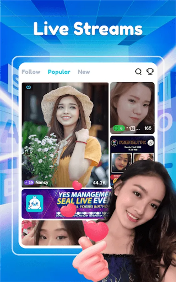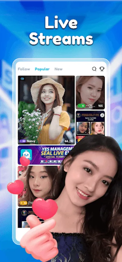 Seal Live is a Live Streaming Chat&Live Video Chat platform, you can make friends and show your talents, send and receive virtual gifts, talk in real time and make video calls with friends.