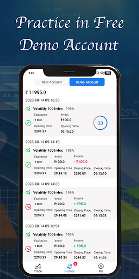 Free ₹10000 demo account for you to practice.You can switch to a real account, deposit funds into it, and trade whenever you want.Beginner friendly tutorial, which will be very easy for new users to quickly study how to make trades. After studying, you will feel more fun in being involved in it.