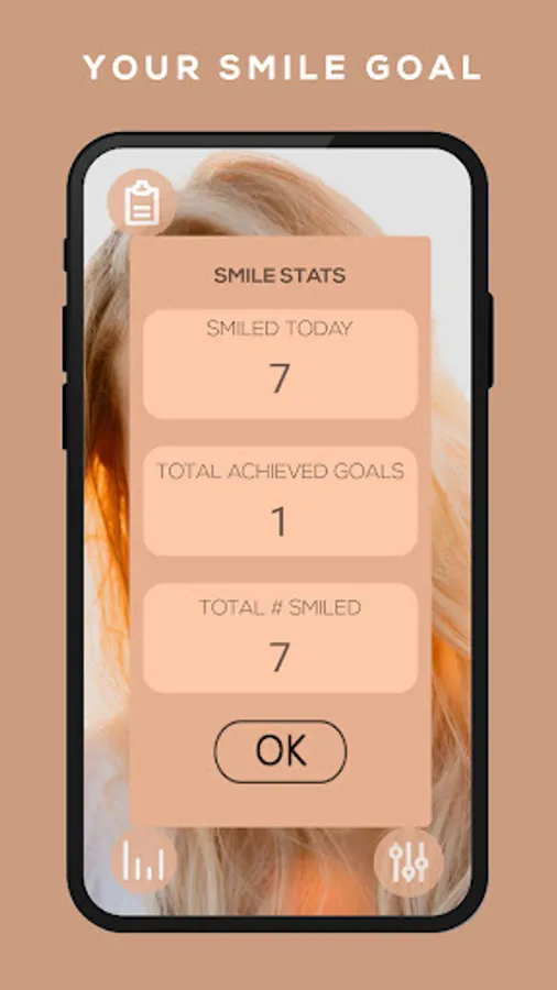 The application is a self affirmation application that helps a user’s mental health by encouraging them to smile. The general functions of this application are the use of the camera and viewing personal statistics.