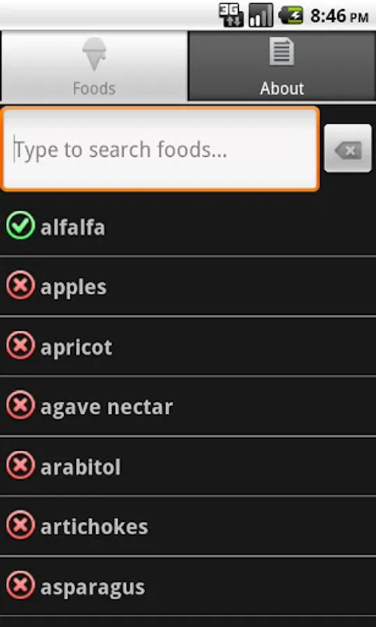 Just glance down to see one of three icons for "good", "bad", or "unsure" (meaning that different sources disagree about the effects of that particular food).
