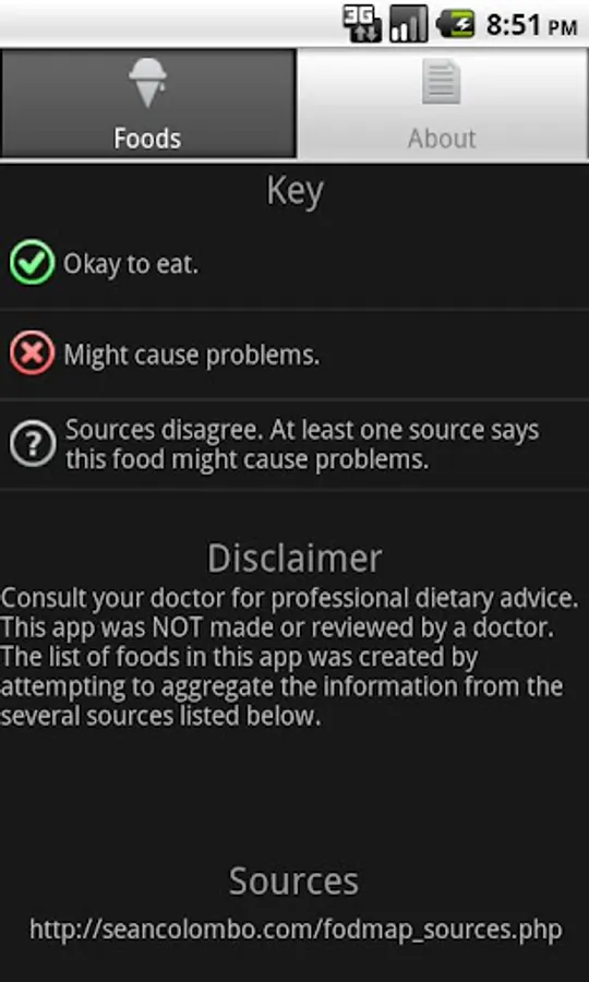 Disclaimer: this app is not made by a doctor and it does not attempt to diagnose or treat anything. It is simply a helpful tool to assist people trying to adhere to a low FODMAP diet.