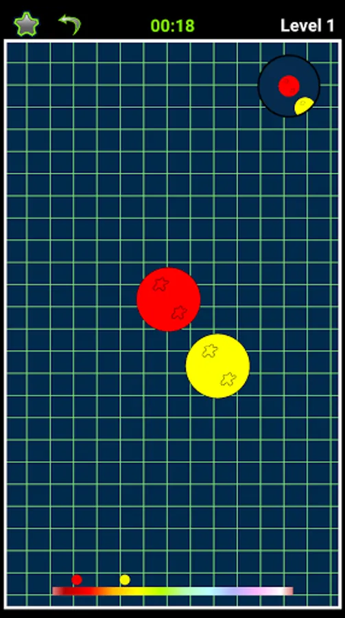The goal of each level is to make all the spots the same color as quickly as possible through a unique new strategy. Each level gets progressively more difficult.
