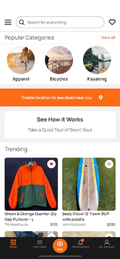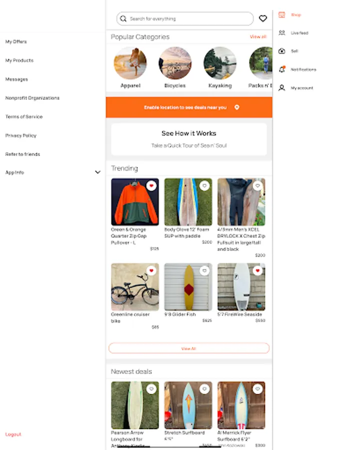 Sea n’ Soul is the 1st resale app for the adventure re-commerce market that gives back to the earth and our users. Together we can reduce waste by facilitating the resale of adventure products, apparel, and clothing. We are helping our communities by giving back to earth-repairing nonprofits and allowing our users to make and save money.