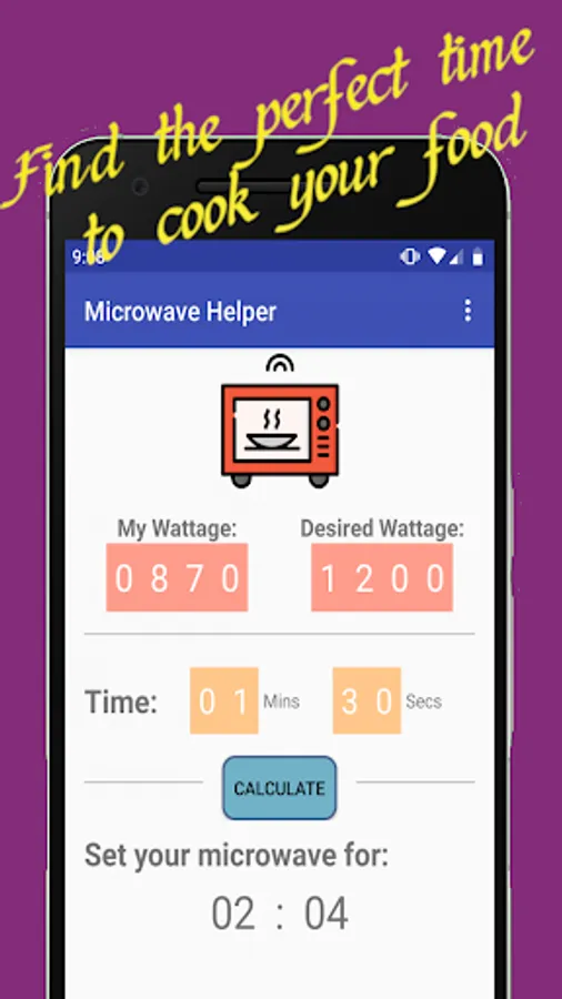Microwaves operate at different wattages. The appropriate cook time for your microwave may vary drastically from what the instructions indicate. With this app, you can find the perfect length of time to cook your food - for free.