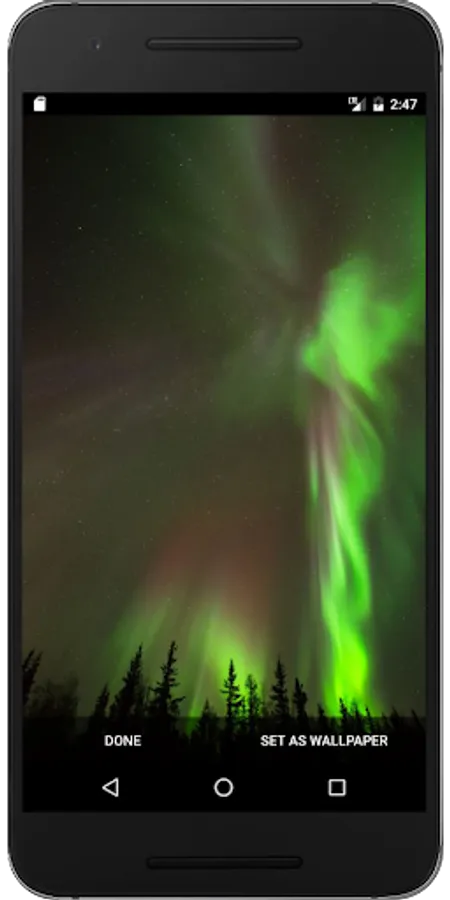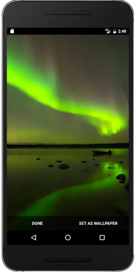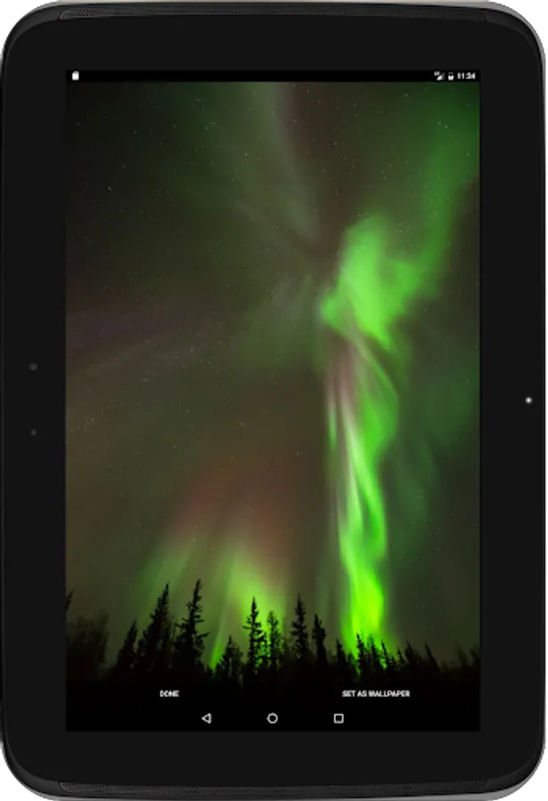 Dress up your Android device with a set of high quality wallpapers. This App includes 36 of stunning wide-angle high-resolution Northern Lights / Aurora Borealis Wallpapers seen in the beautiful starry night sky of Yellowknife, NWT, Canada. The app lets you easily browse through all images in full resolution and set your selection as the new wallpaper with one click.