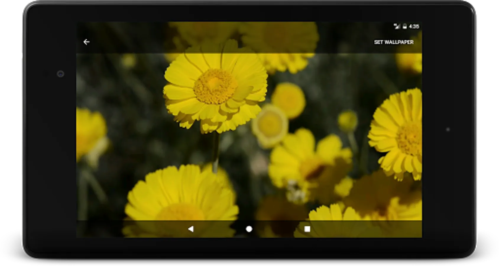 This app is a high-resolution live wallpaper of fresh blooming yellow flowers of Desert Marigold swaying in the gentle summer morning wind. It's made of a high quality HD video. The app runs smoothly and efficiently, and it consumes very minimum battery power, memory and cpu time. It has No Ads.