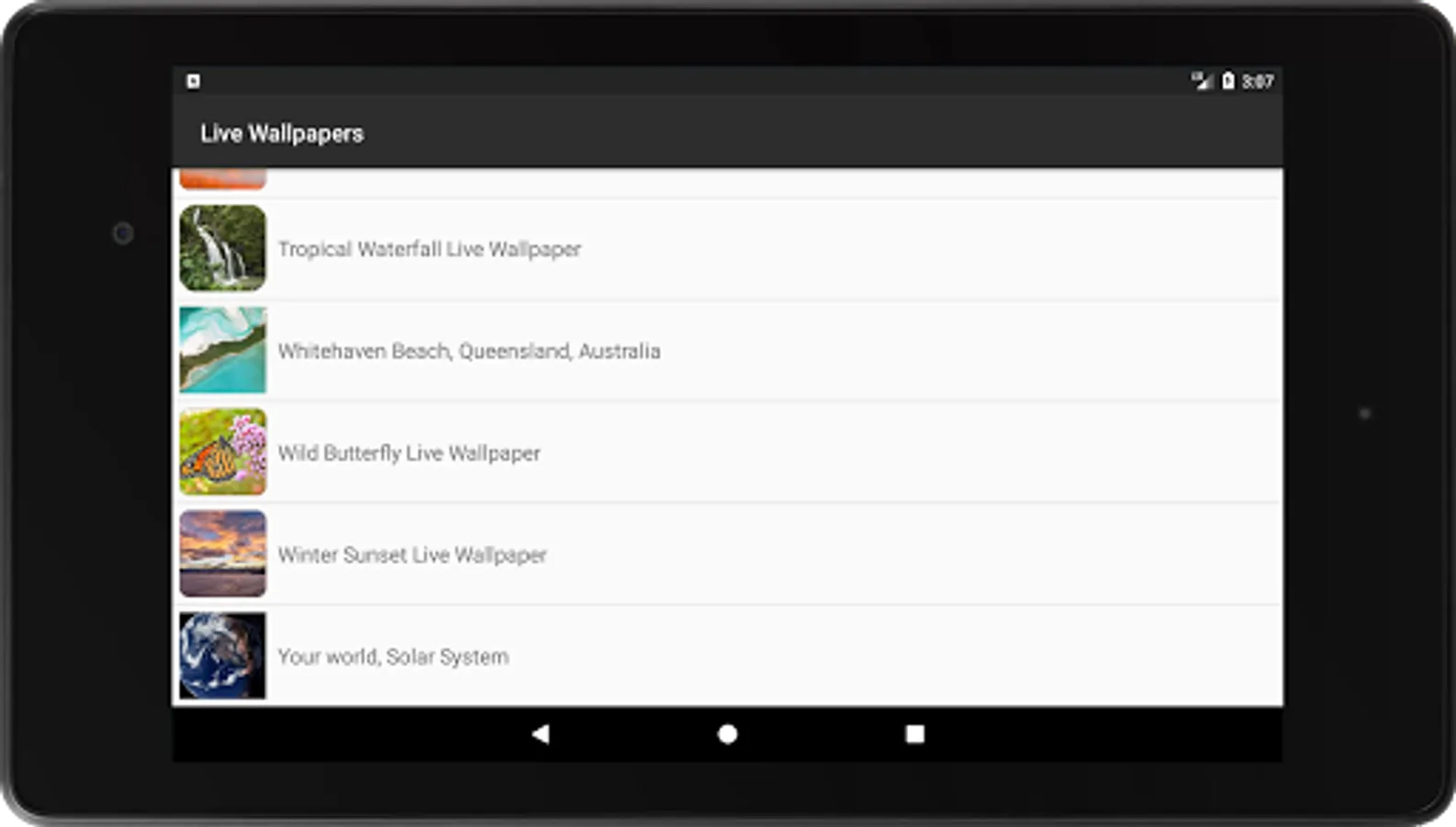 - Find and select "Tropical Waterfall Live Wallpaper" from list of Live Wallpapers installed.