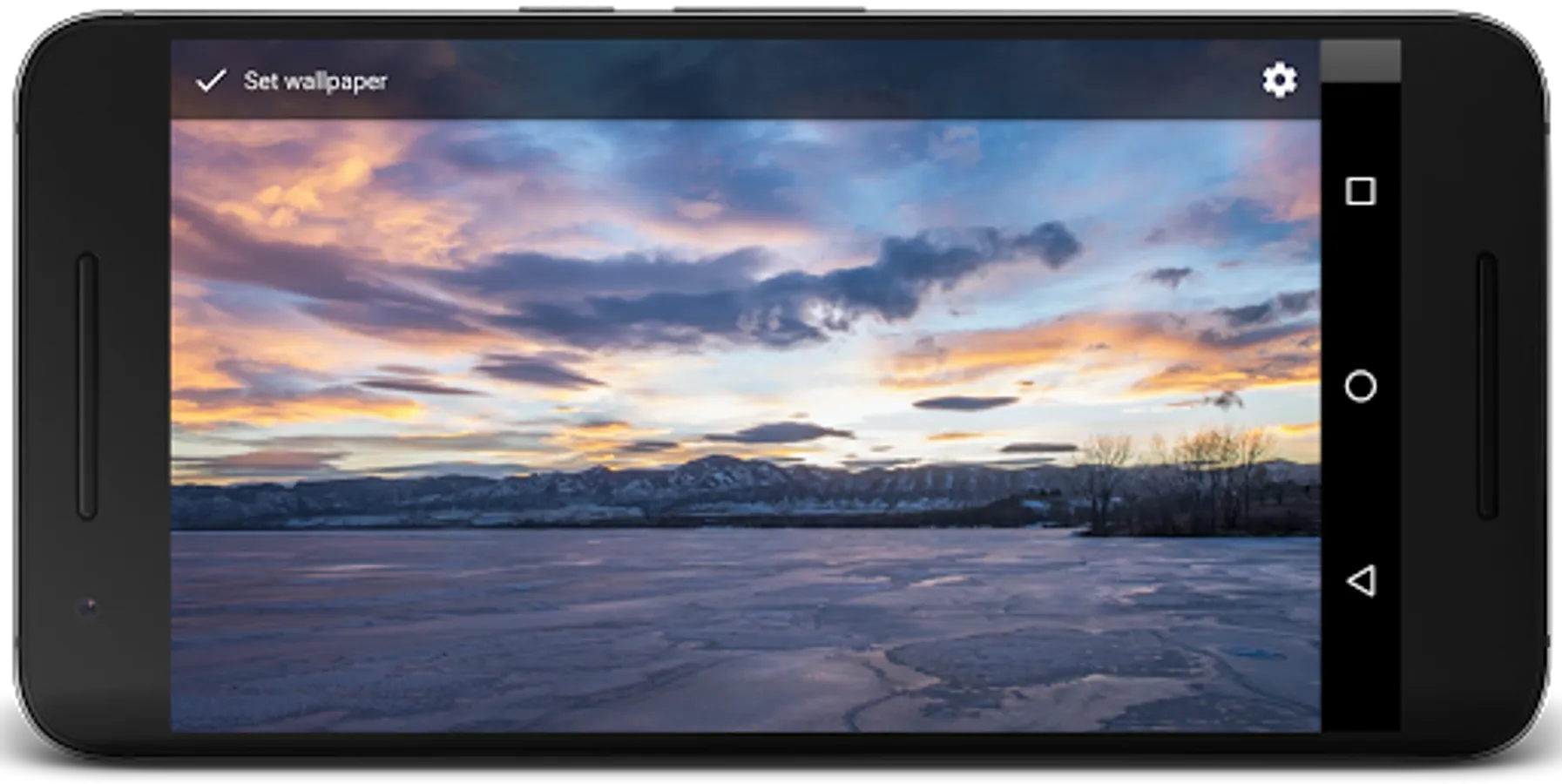 This app is a high-resolution live wallpaper of colorful winter sunset clouds rolling over a frozen mountain lake. It's made of a high quality HD video. The app runs smoothly and efficiently, and it consumes very minimum battery power, memory and cpu time. It has No ads.