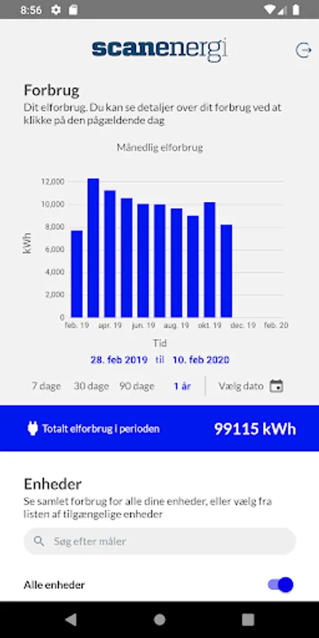 In Scanenergi's customer app, you can see your electricity consumption for each meter.