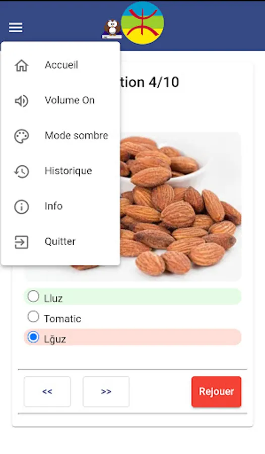 Want to learn the basics of Kabyle? Lexikab will introduce you to the usual words of the language through numerous quizzes. These are presented by category, and are fully configurable: from the number of words to find to the level of difficulty, but also in the choice of the direction of the translation.