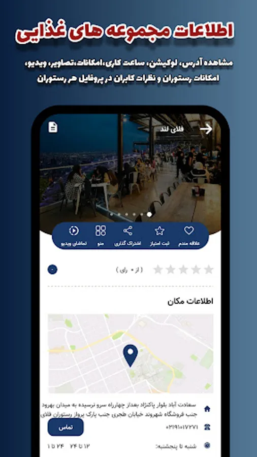 ✅ On the profile page of each restaurant, you have access to information such as address, location, contact number, working hours, photo and video of that restaurant.