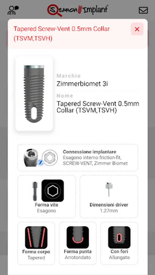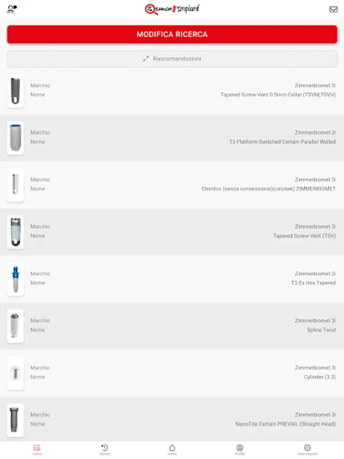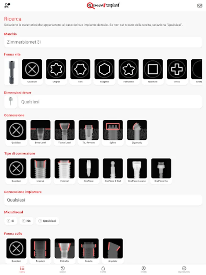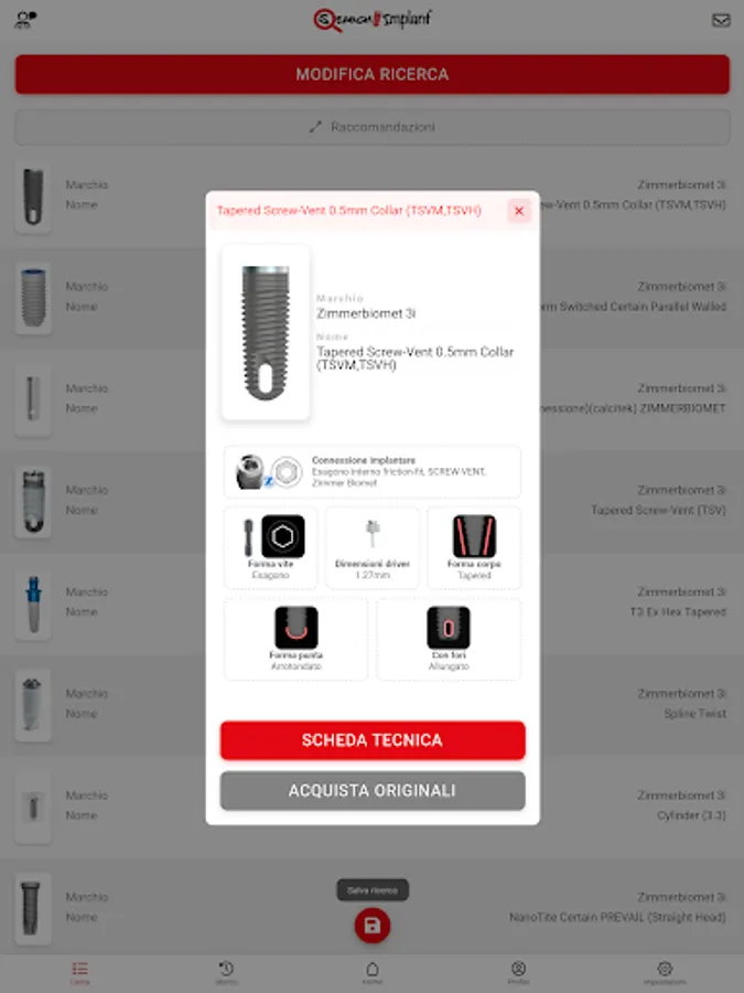SearchImplant allows you to easily find the dental implant from its implant library by selecting the specific characteristics of the implant to search for. This allows you to solve the prosthetic problem by ordering directly from the parent company site, thus guaranteeing the patient high-precision and long-lasting original products.