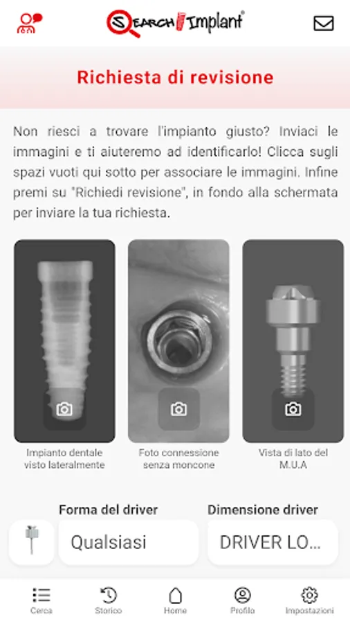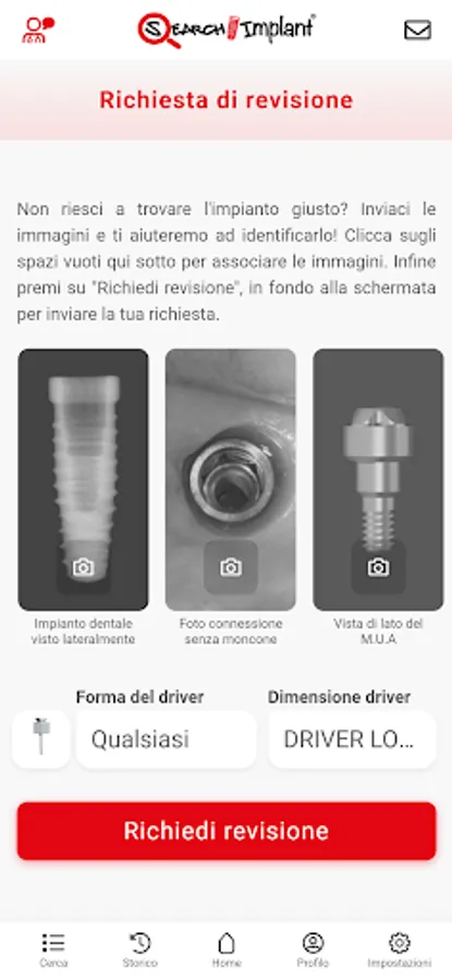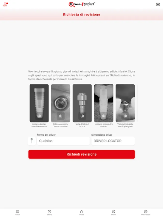 Just select the characteristics of the shape, connection, design of the threads and our system, equipped with a worldwide database of all the dental implants of the companies, identifies the correct one, its reference company, its technical characteristics and the original prosthetic instruments to use.
