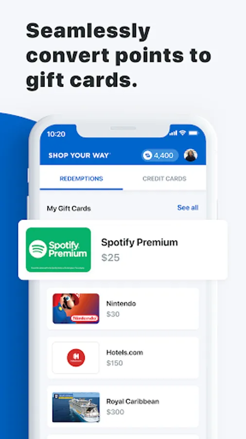 Redeem points for cash back as gift cards with the brands you love or for popular products on shopyourway.com.