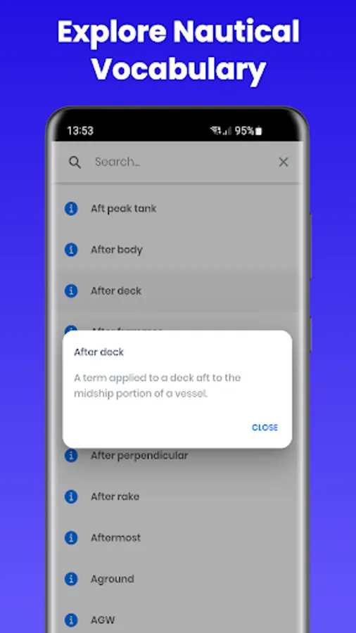 Maritime Dictionary. Our maritime dictionary contains over 2,000 straightforward definitions, covering the most common terms in the marine industry, including shipping, meteorological, tanker terminologies, maritime transport, sailing, and sea navigation definitions.