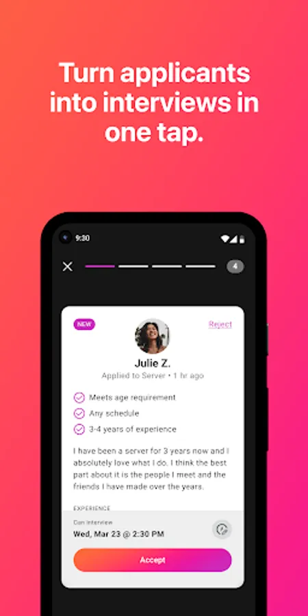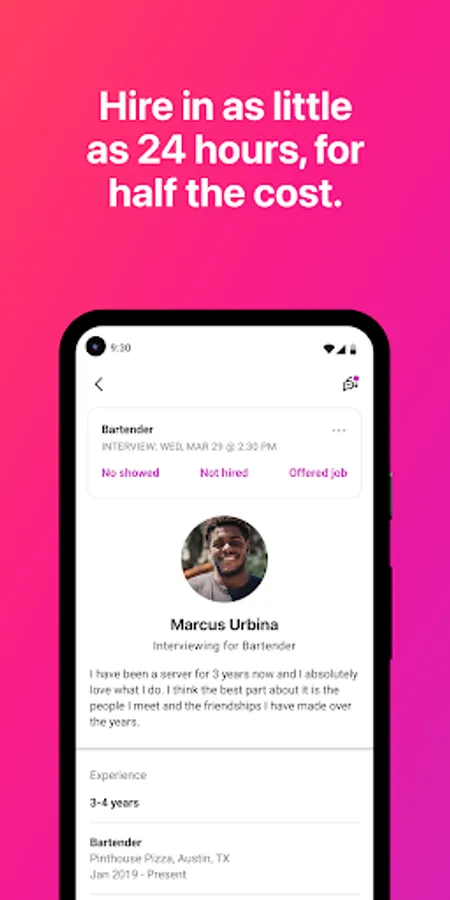 The app speeds up every aspect of the hiring process, keeps you updated, and allows you to focus on your duties outside of the back office.