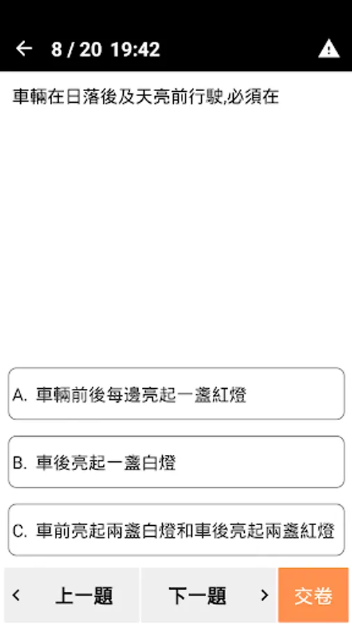 為了模擬現實筆試的環境,程式為隨機抽取20條題目,讓你在限時20分鐘內回答。你可以多利用這個功能測試自己的實力。
