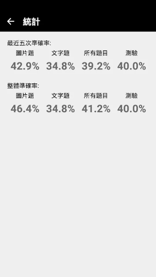 如果你覺得不斷的做練習題,但不清楚自己有沒有進步的話,你可以不時參考答題的統計數據,看看題目回答的準確率。
