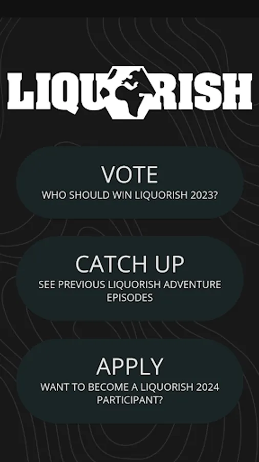 The official Liquorish mobile app allows viewers and fans of the award winning TV adventure reality show to vote through this mobile application. The viewers at home are asked to vote on a daily basis (one vote per 24hr) their favourite participant. The participant with the most votes will win the current edition of the show. The eliminated participants will have their vote nullified and cannot win the show.