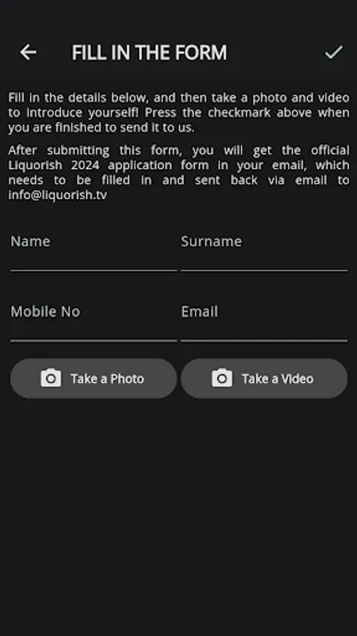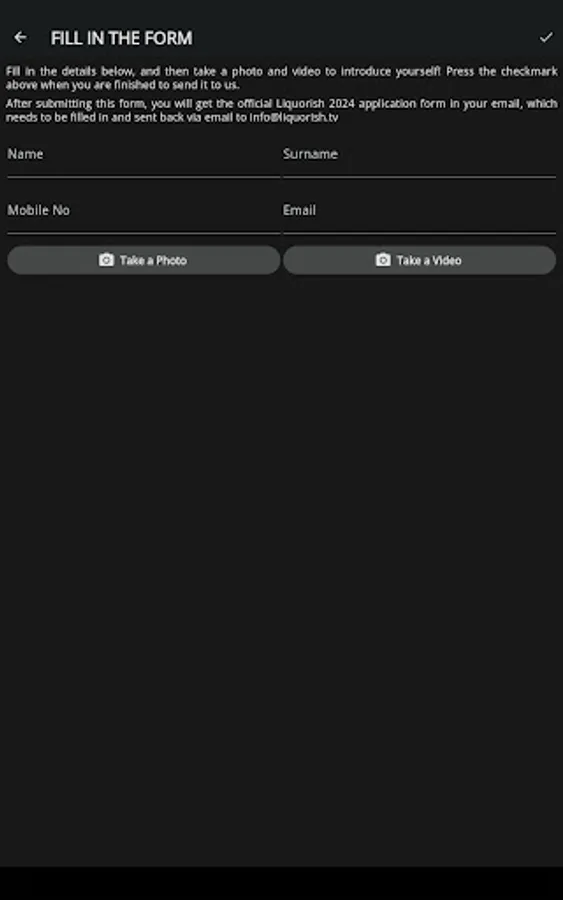 The mobile app allows interested persons to apply to participate in the upcoming adventure. Interested people are asked to fill in their details and upload a short video and photo. They will get a confirmation email upon application.