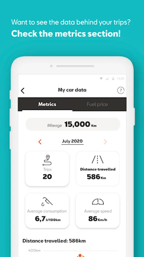 - Metrics: check fuel consumption, mileage and fuel level at a glance, as well as trip times, and get your completed routes visualised on a map