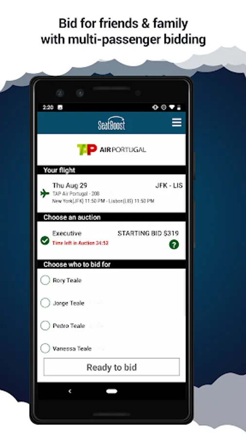 Upgrade your seat when you fly with SeatBoost’s live, last-minute auctions.