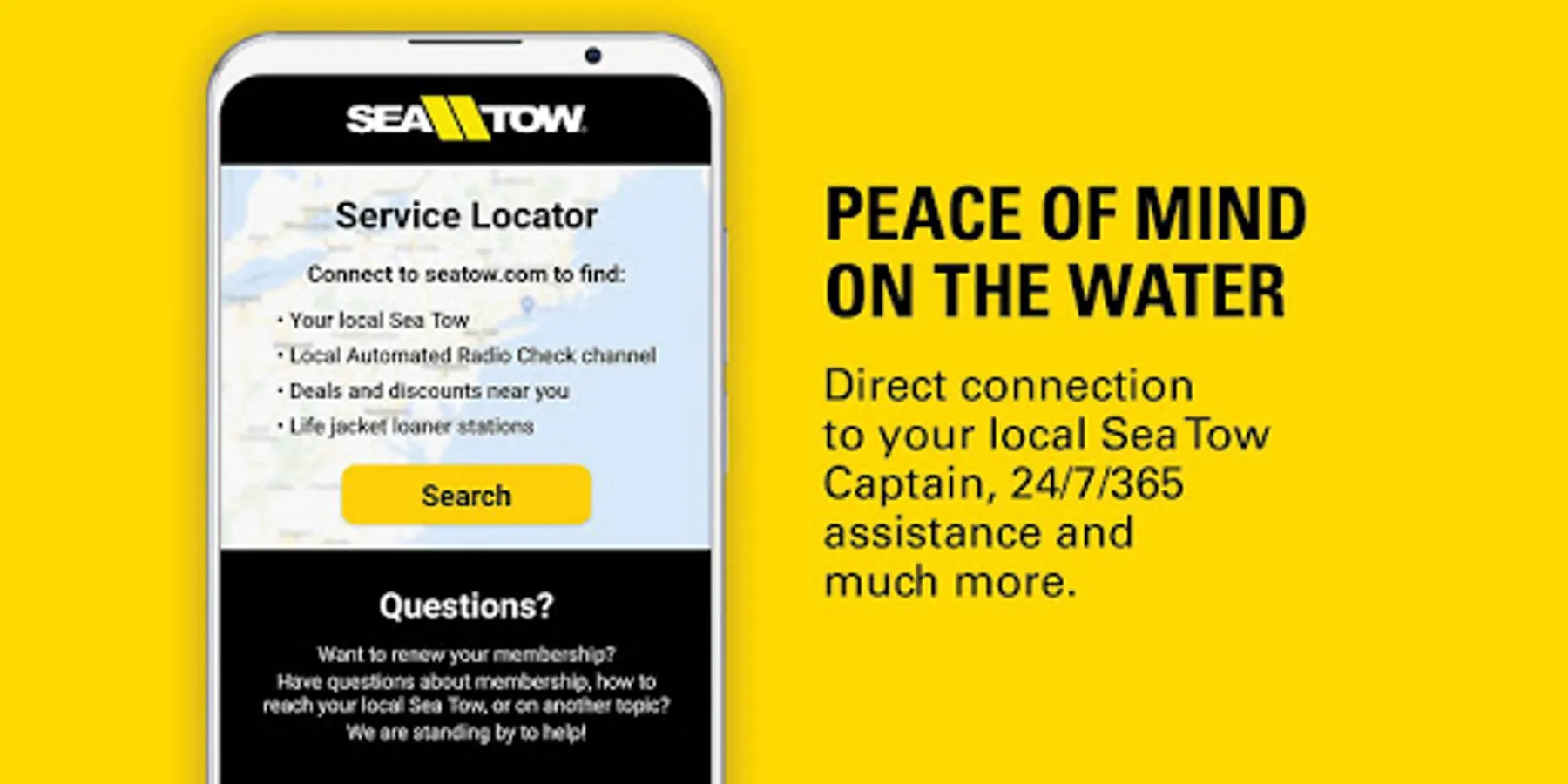 The Sea Tow app is a direct connection to seatow.com. Join Sea Tow, renew your membership, find your local Sea Tow, find Sea Tow Savings Club deals and discounts, determine your local Automated Radio Check channel or locate a life jacket loaner station near you.