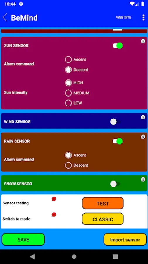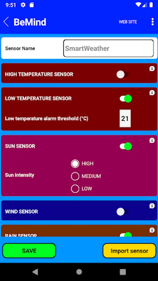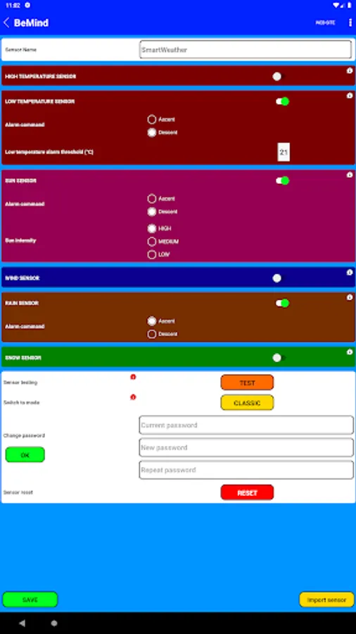 Simplicity and convenience in use. With this application you can configure and control SEAV bluetooth sensors. Ability to change alarm thresholds for each sensor.