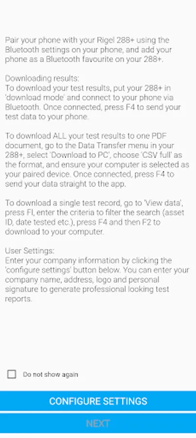 Rigel 288+ Downloader is an app built to make paperless and wireless data transfer possible for biomedical and clinical engineers performing electrical safety tests, using just a smartphone or tablet.