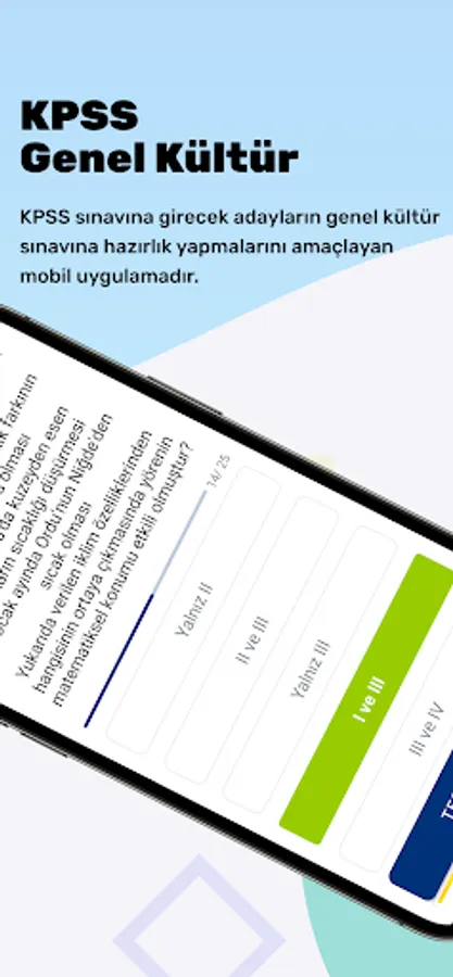 It is a mobile application that aims to prepare the candidates who will take the KPSS exam for the general culture exam. The application includes History, Geography, Citizenship and Current Information sections.