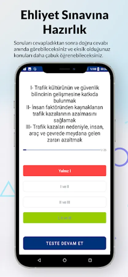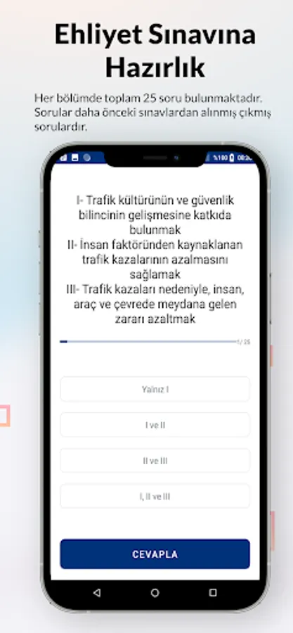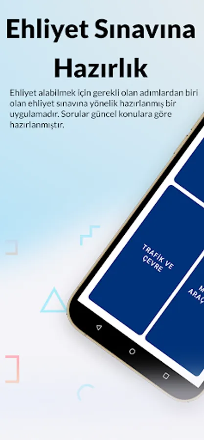 It is an application prepared for the driver's license exam, which is one of the necessary steps to get a driver's license. The questions are prepared according to current issues.