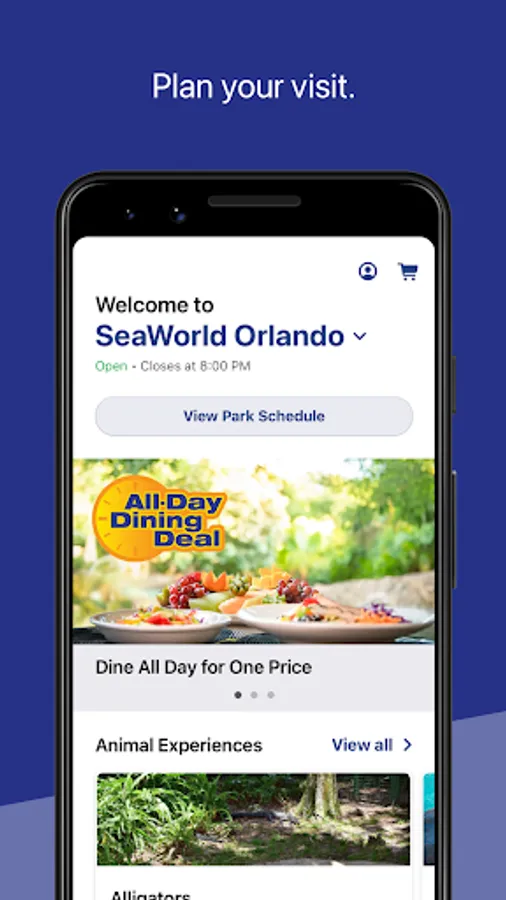 • Discover park amenities including, Animal Experiences, Shows, Rides, Events and Dining