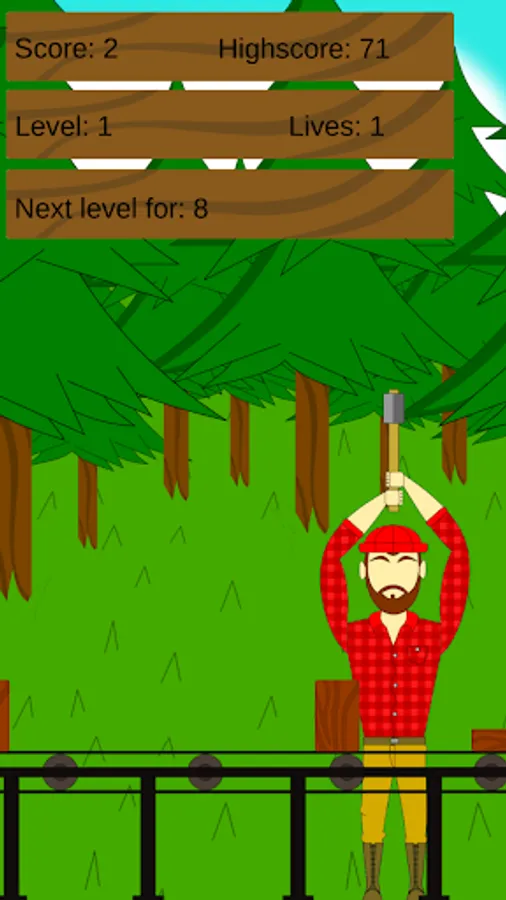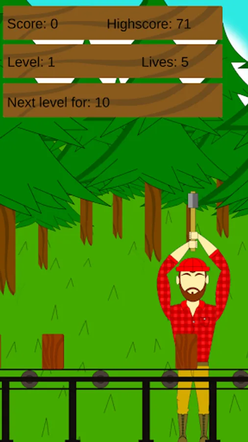 Game about the lumberjack. Cut the wood for as long as you can. Collect points and beat your own records. I hope you will have fun.