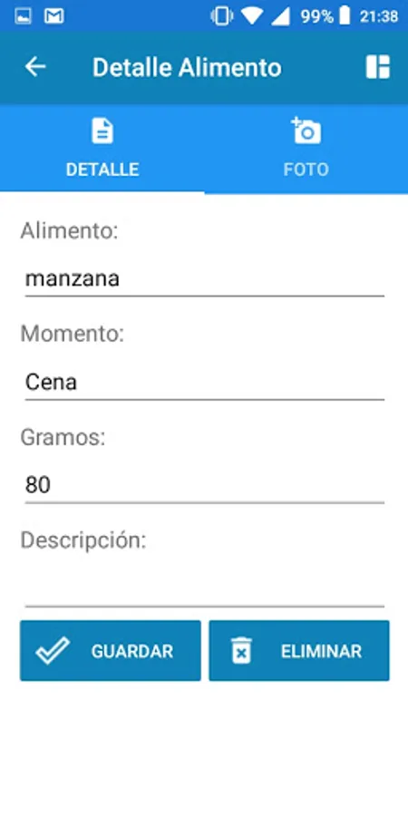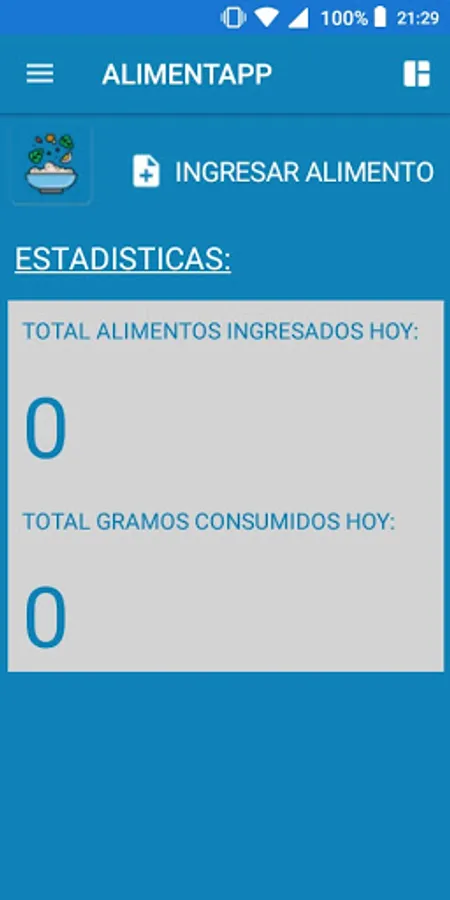 AlimentApp is a simple application to keep track of our diet. It is like a diary where we can have a record of the food we consume, the amount of it and at what time.