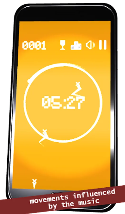 The movements within the circle are influenced by the music and its volume. The rope of the pendulum is getting longer and longer.