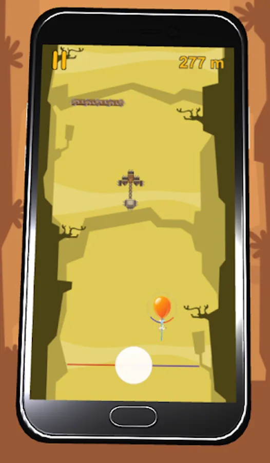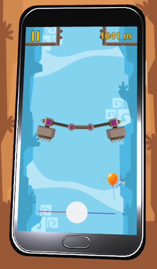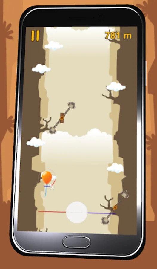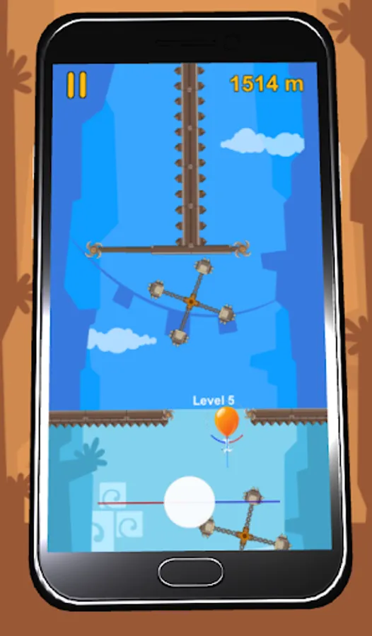 Numerous dangers, saws, axes, sharp points threaten the balloon. How far can you safely lead him?