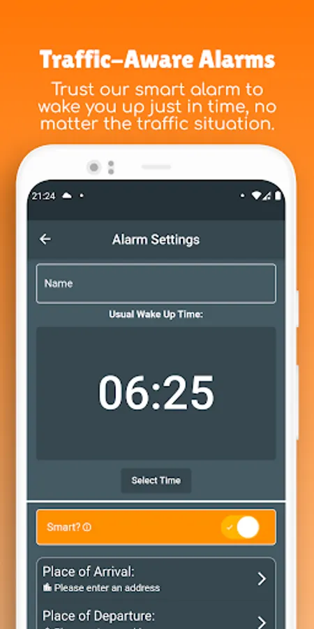 🚗 Outsmart Traffic: Smala calculates your daily commute, monitors traffic conditions, and considers environmental factors to wake you up precisely when you need to leave. No more stress-inducing traffic surprises!