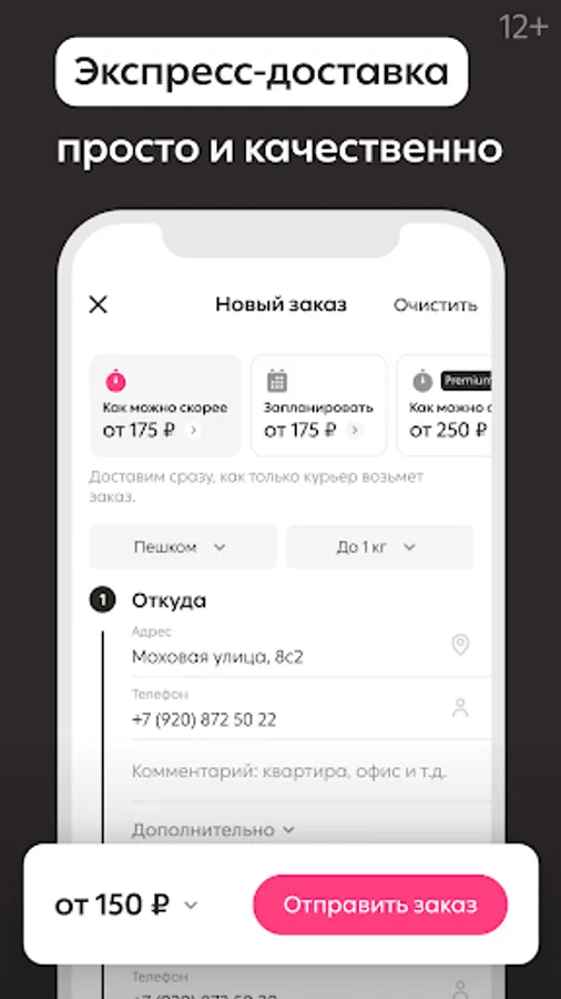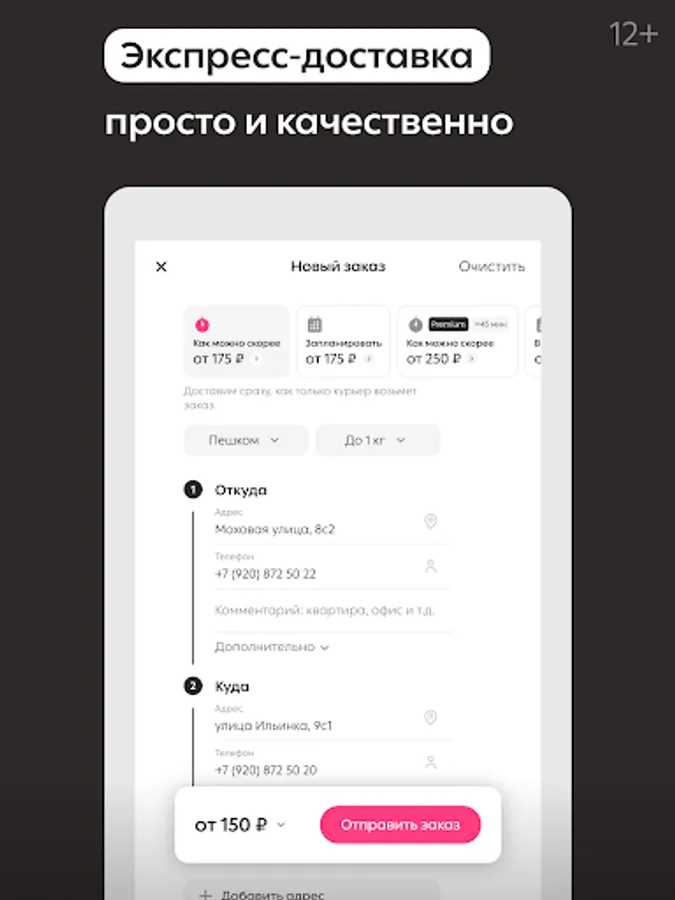 Dostavista is an urgent delivery service based on a crowdsourcing model. You place an order in the app, and the system selects the ideal courier nearby.