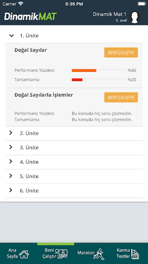• With the “Marathon” feature, where he can collect points according to the degree of difficulty by solving questions in order from the subjects he has studied throughout the year, he can track how far he has gone and how far he has left.